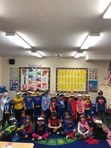 Kindergartners dressed up as superheroes to celebrate “Zero the Hero” and their 100th day of school.