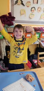 Preschool students in the pre-K 2 class focused on the letter P last week at school. They were busy making pasta and penguin patterns, observing pumpkins, running a pumpkin patch and writing thank-you notes to community firefighters.