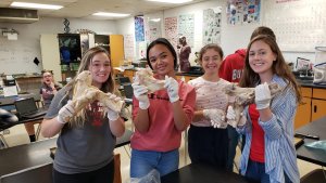 High school students in Mr. Ben Clutter’s college credit plus anatomy class recently worked with bones from a cow’s knee to get a better look at synovial joints. The lab helped them better understand the anatomical structure of a knee.
