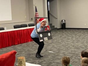 \Third-grade teacher Barb Tropf won the contest with her “I Want a Hippopotamus for Christmas” performance. In addition to the lip sync battle, 12 teachers and staff members also performed a parody rendition of “The 12 Days of Christmas” for teachers. The JES choir also sang and scholars had a great afternoon celebrating the last days of the year.