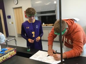 Chemistry students at Berkshire High School explored the scientific process by designing an experiment to answer the question, “What color of food coloring requires the most bleach to remove?” Students were given the role of a product design engineer of a manufacturing company to create labels that indicate how much bleach should be used when washing clothes.