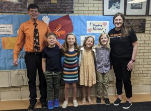 Third-graders Parker Lower, Liam Dixon, Reid and Julliette Tucholka from Gurney Elementary School presented about the Gurney Service-Learning Club at the Chagrin Falls Board meeting last week.