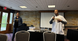 Co-founders of the Do It For James Foundation, Timothy and Tamia Woods, spoke to Geauga County parents at the Punderson Manor Lodge and Conference Center in Newbury Township May 8 about the dangers of child sextortion after losing their son to it.