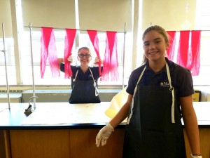 - (IMG 4215) Junior high students Loreali Gandolf Glover and Grayce Young work in their science lab.