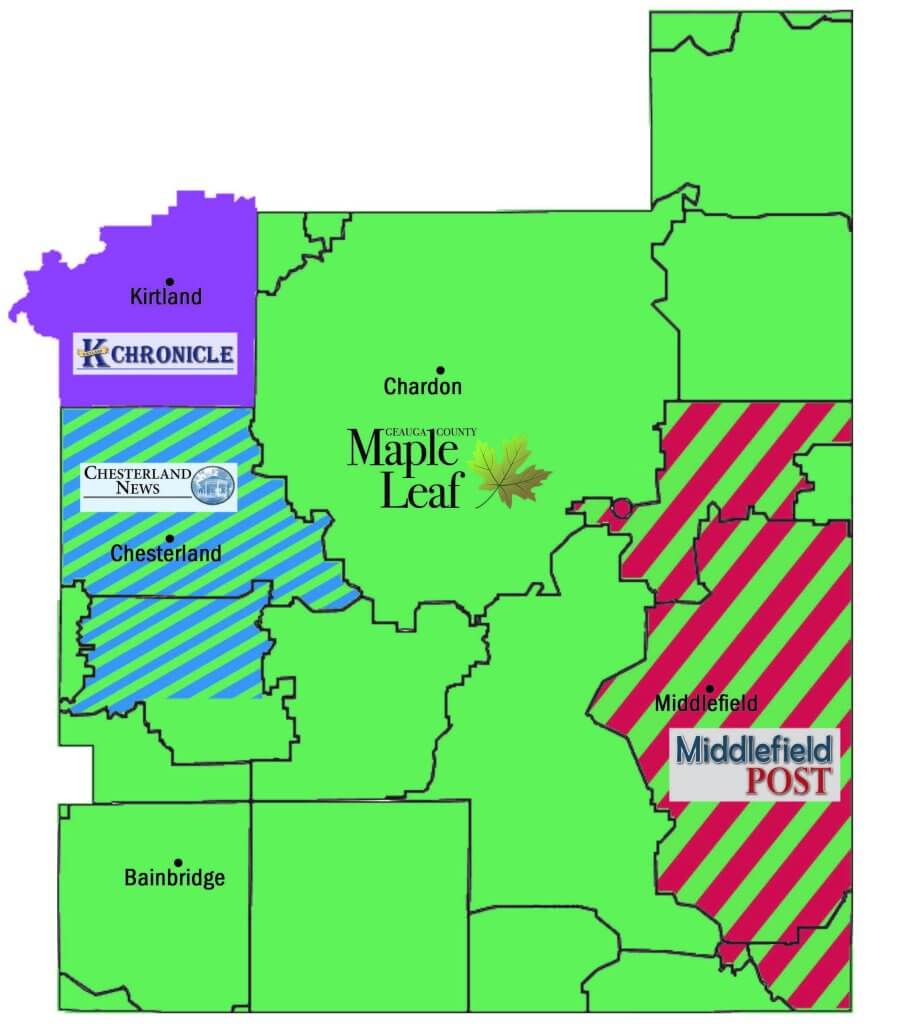 • All classified line ads run in the Geauga County Maple Leaf on Thursdays, and in the Chesterland News and Middlefield Post on the weeks each newspaper is published. The Chesterland News and Middlefield Post are published every other week on opposing weeks.