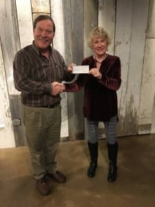 Mantua resident Bill Cleary accepts the $1,000 Grand Raffle winning check from Friends Of WomenSafe member Marilyn Harman at the Dec. 15 meeting of the Chardon Toastmasters, of which they are both members. Friends of WomenSafe sold 358 tickets for their Grand Raffle, an effort that raised $3,300 for domestic violence prevention efforts in Geauga County.