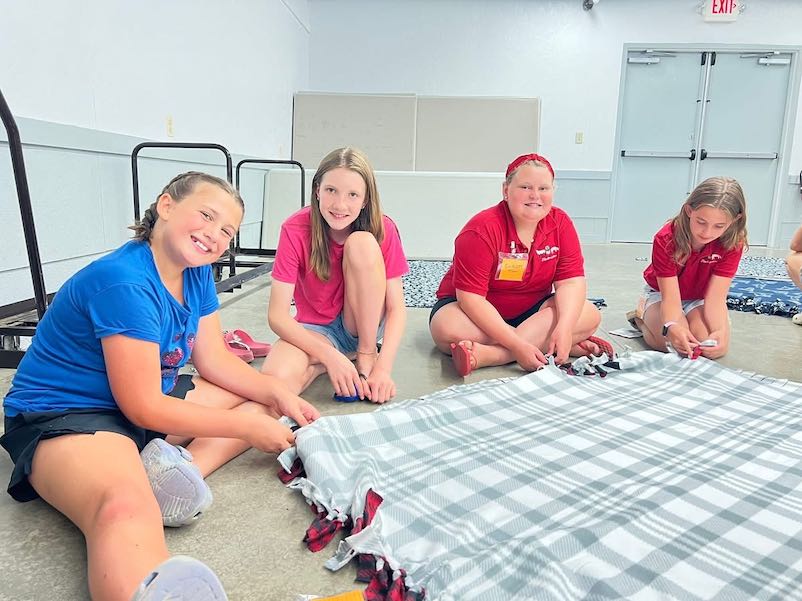 At recent meetings, the group came together to make blankets for veterans, a project that left everyone feeling proud to give back to those who served. Along with their community work, the club has enjoyed a potluck picnic with time fishing and swimming, making memories together outside the barn. They voted on Junior Fair King and Queen, prepped buyer boards and cage signs. The members also spent time practicing a quality interaction with livestock sale buyers utilizing eye contact, a firm handshake and well thought out statements.