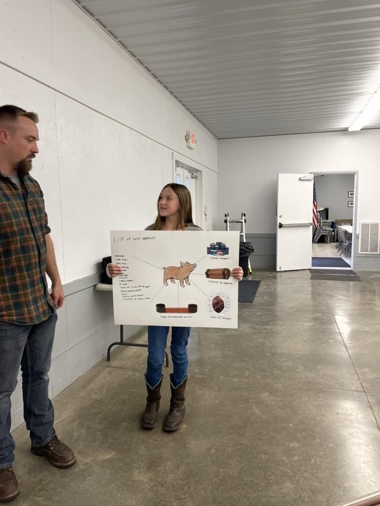 Swinging Hams 4-H Club’s first meeting of the year was held on Feb. 7. The club welcomed new members and talked about what projects everyone was doing. New poultry members will have to attend a poultry clinic. Addison Burnett presented a market hog housing supply project.
