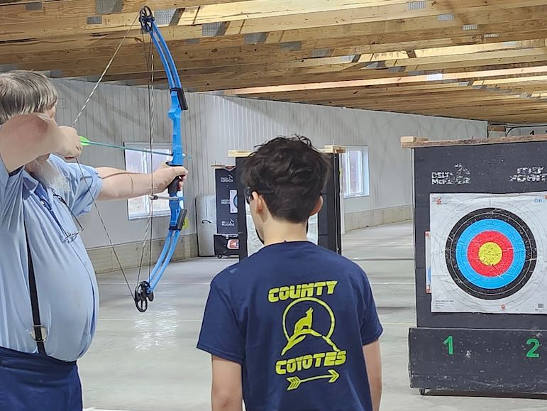 Members of the Geauga County Coyotes 4-H shooting sports club introduce residents of The Cottages Assisted Living to archery on March 23 at Ohio Premier Archery in Middlefield.