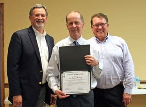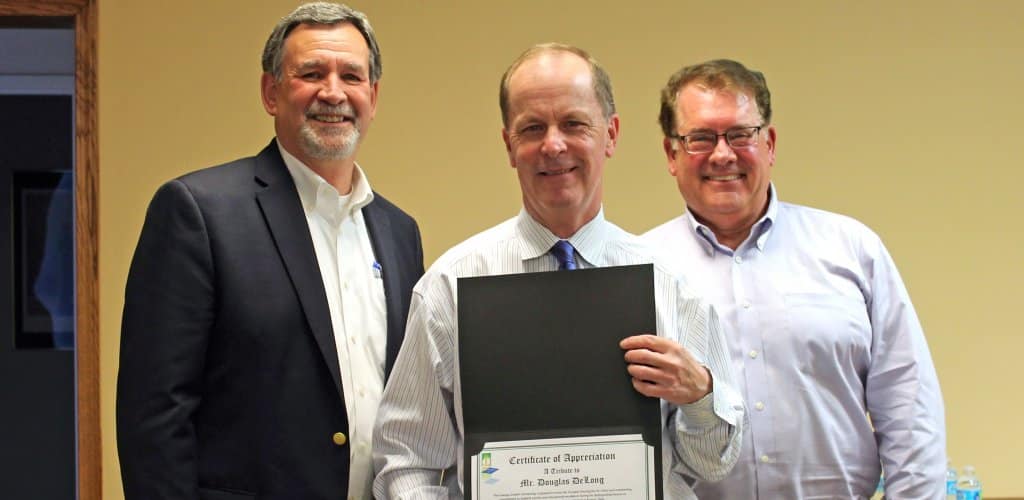 Geauga Growth Partnership stepped away from the regular business agenda during its bi-monthly board meeting May 15 to recognize its outstanding partnership with Berkshire Schools Superintendent Douglas DeLong, who will be retiring July 31.