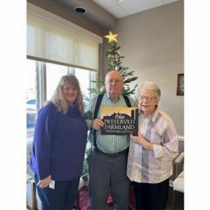 From left, Carmella Shale, Geauga Soil and Water Conservation District (GSWCD) director and engineer, celebrates with John and Mary Lou Hope, of Thompson Township, after signing their 129-acre farm into the Ohio Department of Agriculture’s Local Agricultural Easement Purchase Program (LAEPP).