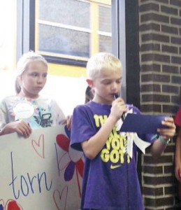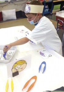 First graders at Newbury Elementary School performed “vowel surgery” on words. It was a fun and engaging way to get students to practice CVC words. Teachers Stephanie May and Elissa Ebbert turned their classrooms in to a “hospital ” and performed “surgery” where vowels are missing and patients are sick.
