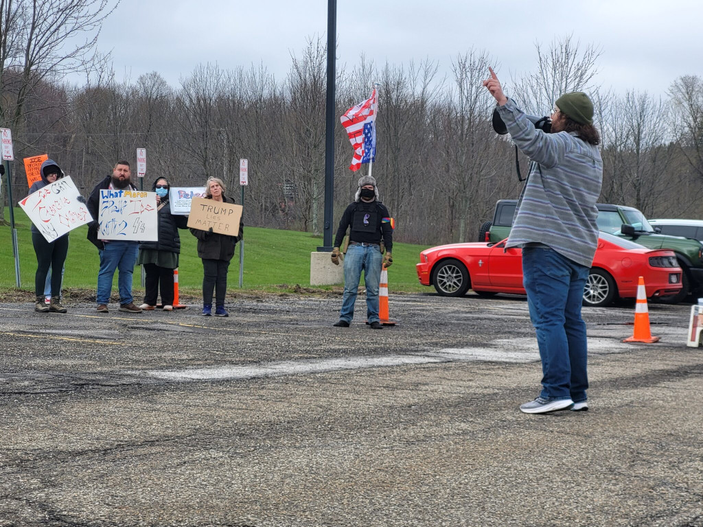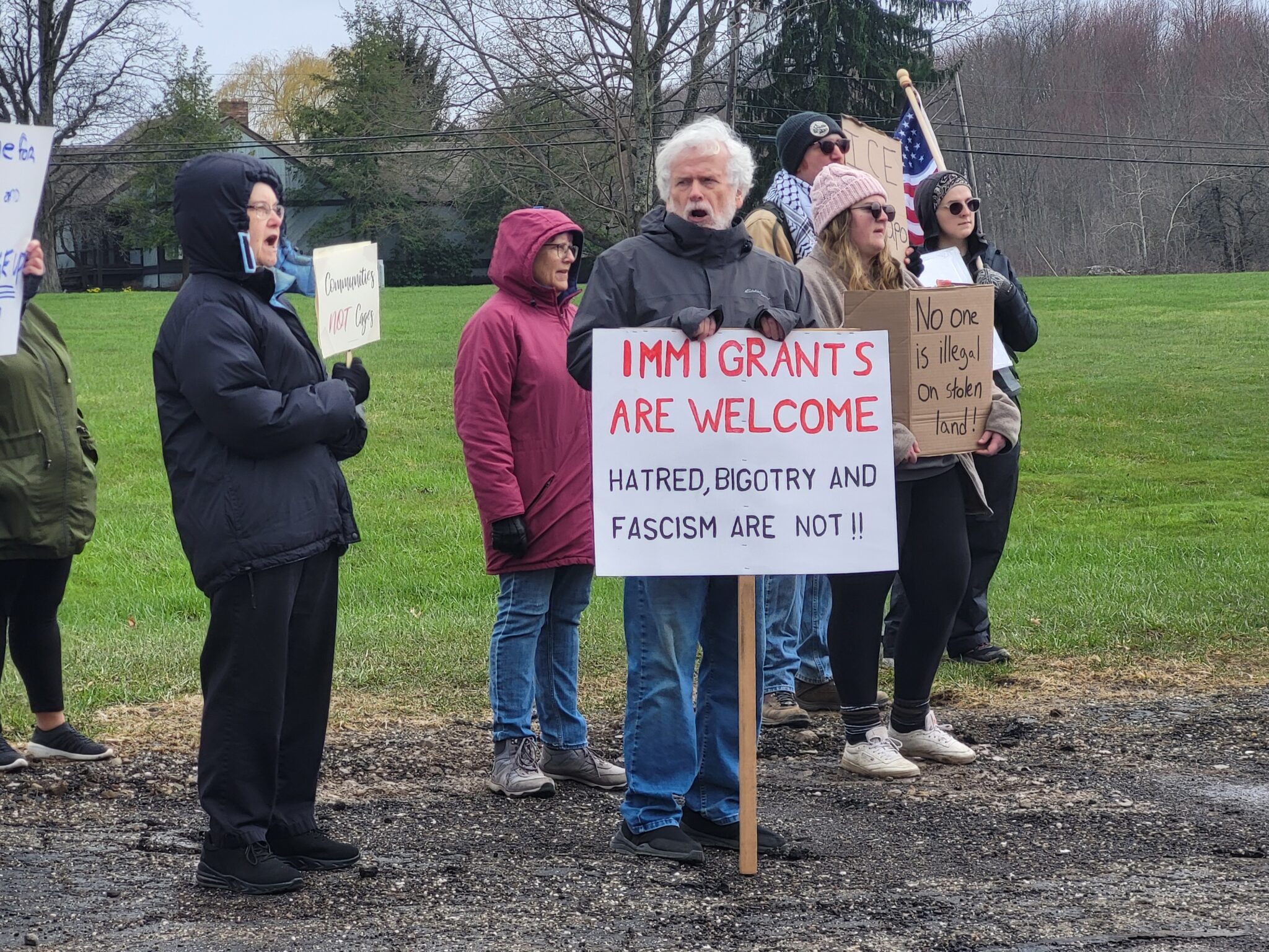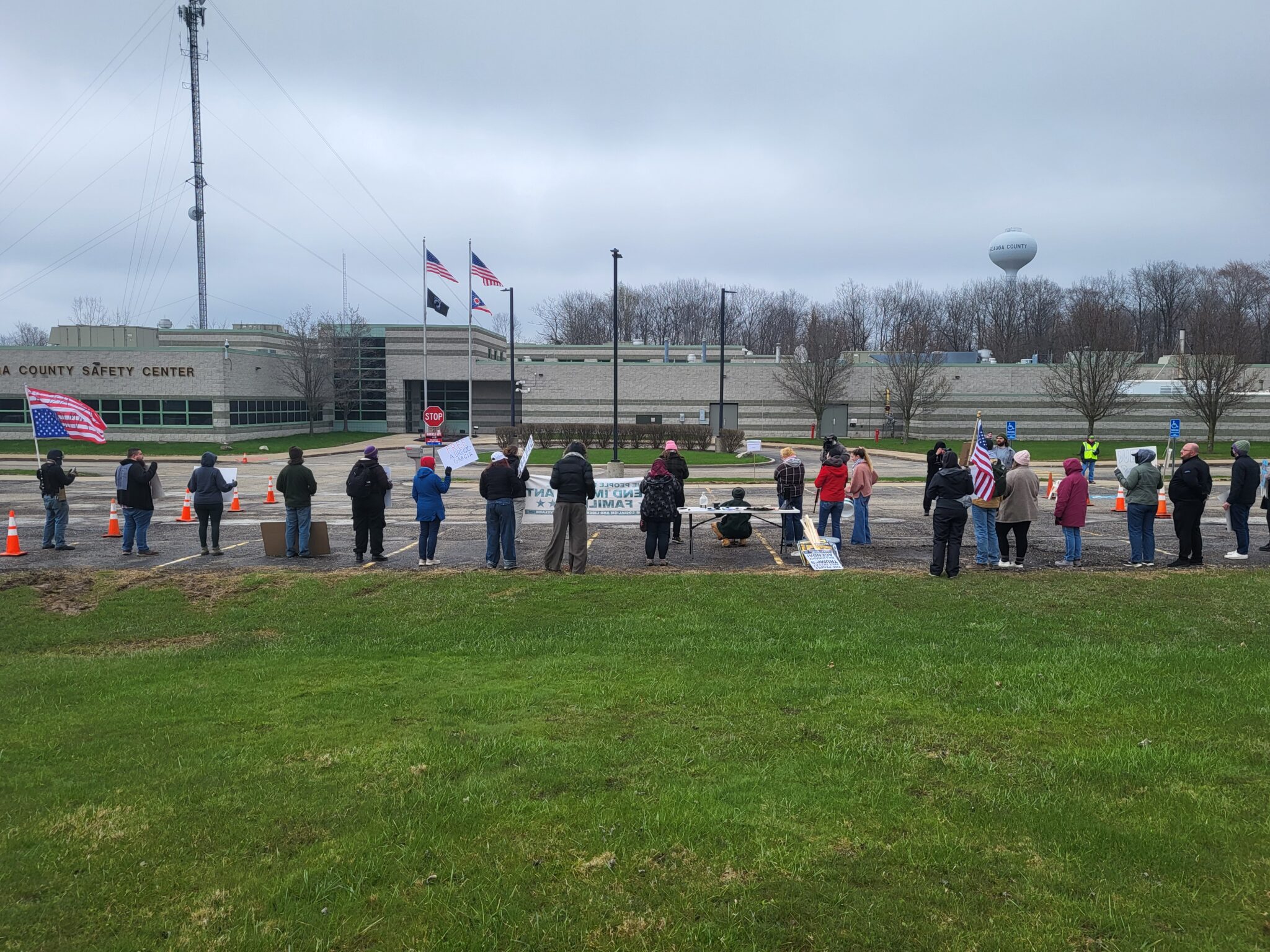 Demonstrators stood in front of the Geauga County Safety Center on April 12 to rally against the detention of immigrants in the jail and nationwide, marking three months of protest at the facility.
