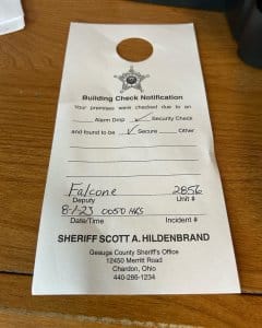 Geauga County Sheriff Scott Hildenbrand’s office regularly conducts business security checks around the county to help reduce the probability of break-ins and burglaries.