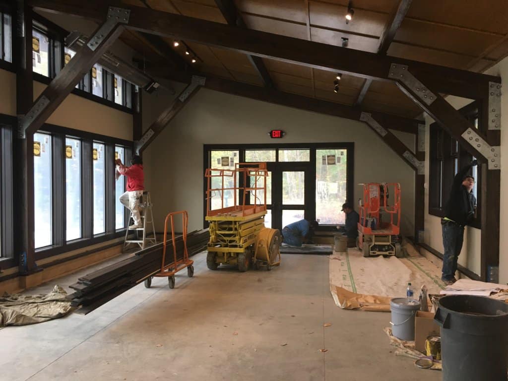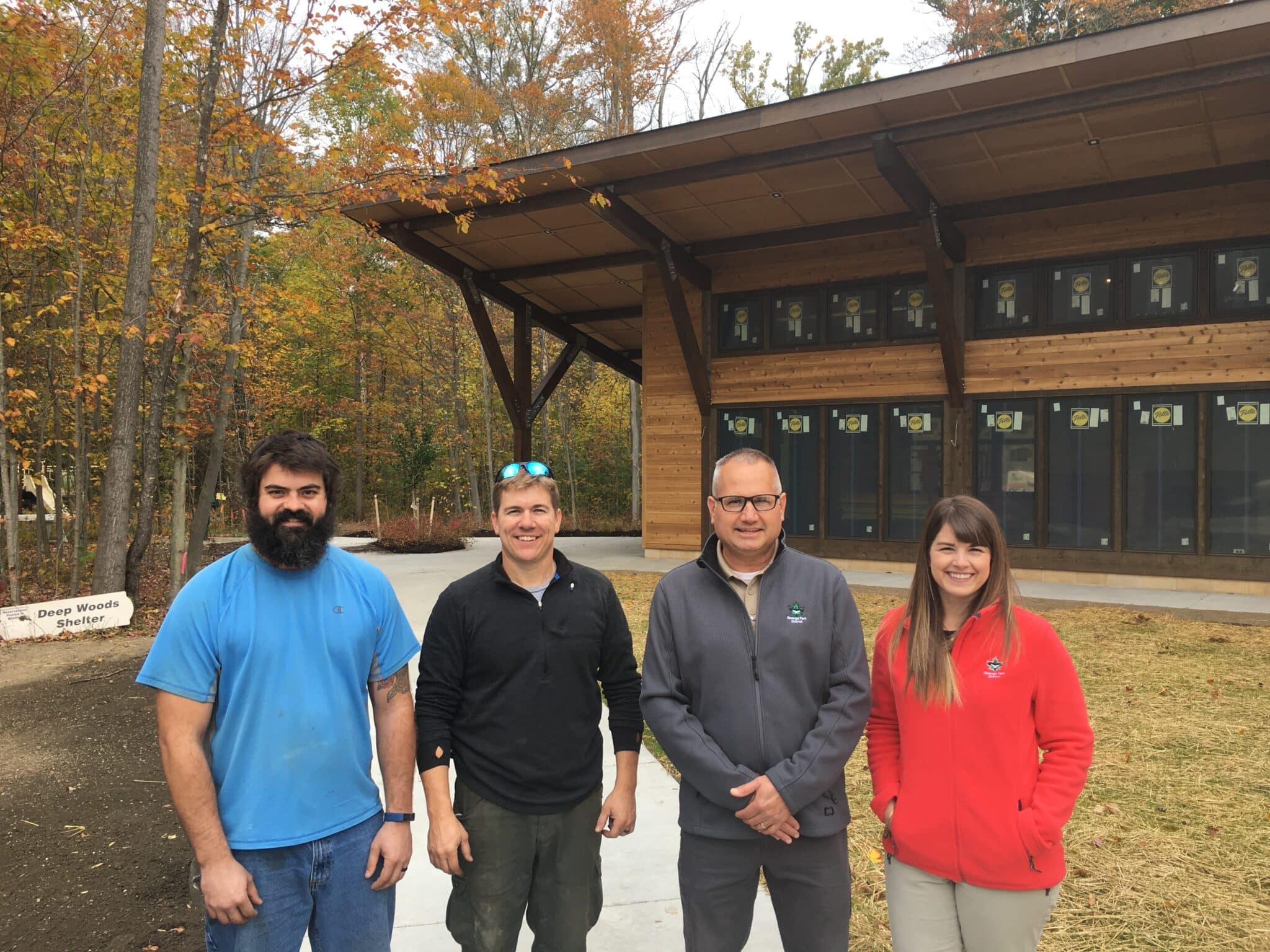 “The new Deep Woods Lodge drew inspiration from our other parks, including the Headwaters Boathouse and the lodge at Claridon Woodlands,” GPD park planner Anne Lynch said. “The building footprint was re-oriented to be more south facing to take advantage of the natural sunlight through the front façade of glass windows.”