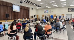 The crowd, almost entirely mask-less, consisted of over 65 parents and community members who had an issue with Cardinal Schools issuing a mask mandate the night before the 2021-2022 school year began after a fifth-grader tested positive for COVID-19.