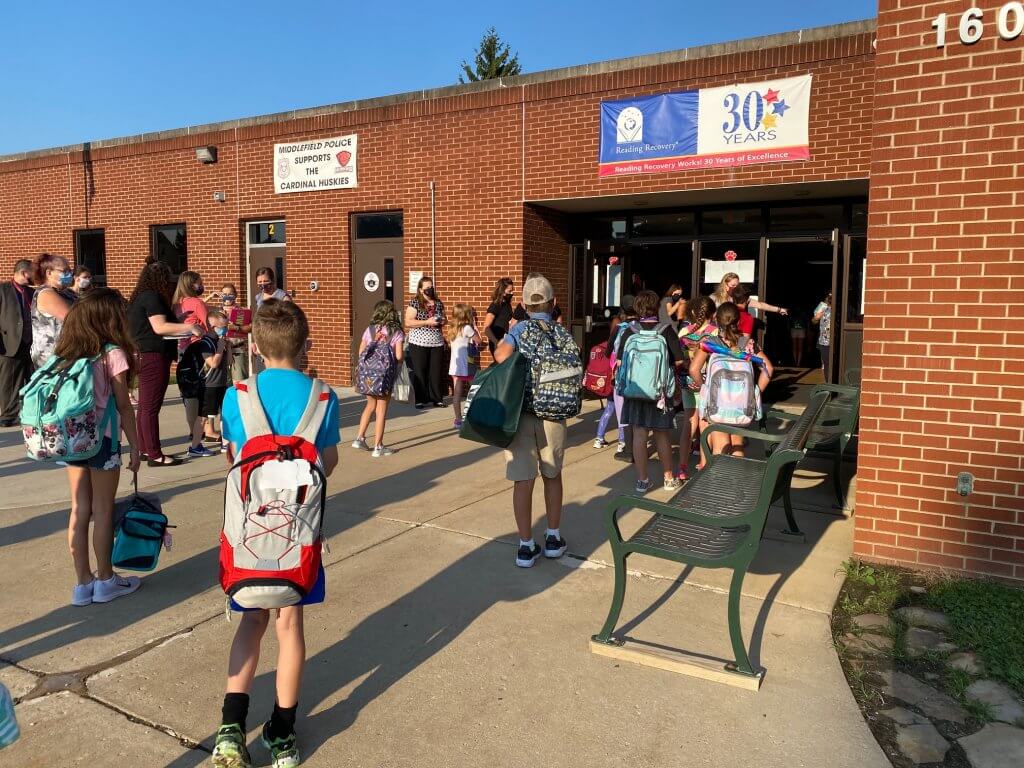 Another COVID-19-related delay is the cleaning of school buses between runs around the district, which extends from Parkman Township south of Middlefield Village to Huntsburg Township north of the campus.
