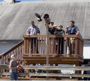 grand champion hen, Bandit, owned by 8-year-old Amelia Shively, of East Claridon, flew 43 feet 3 inches.
