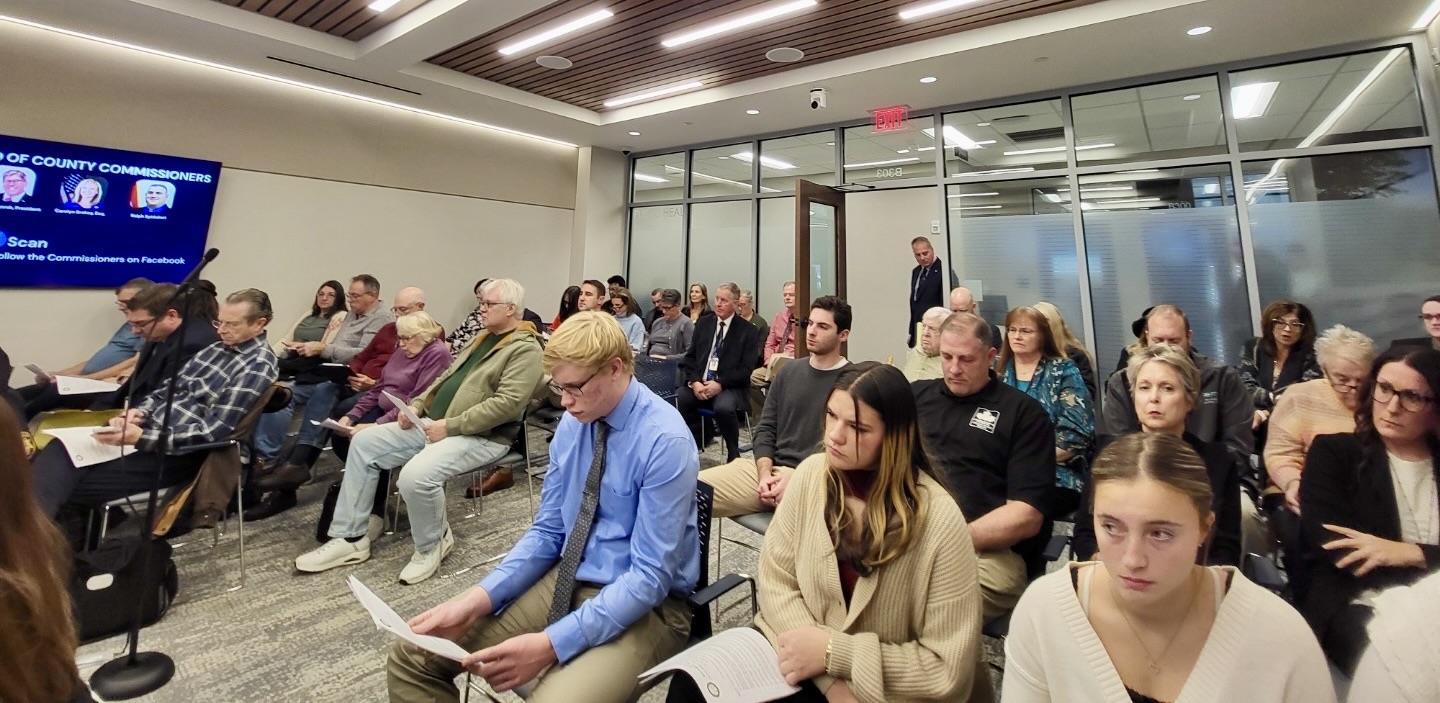 Representatives from school boards, townships, the city of Chardon, the library, the Geauga County Board of Mental Health and Recovery Services and the Geauga County Board of Developmental Disabilities packed the Nov. 18 commissioners meeting to offer in-person comment.
