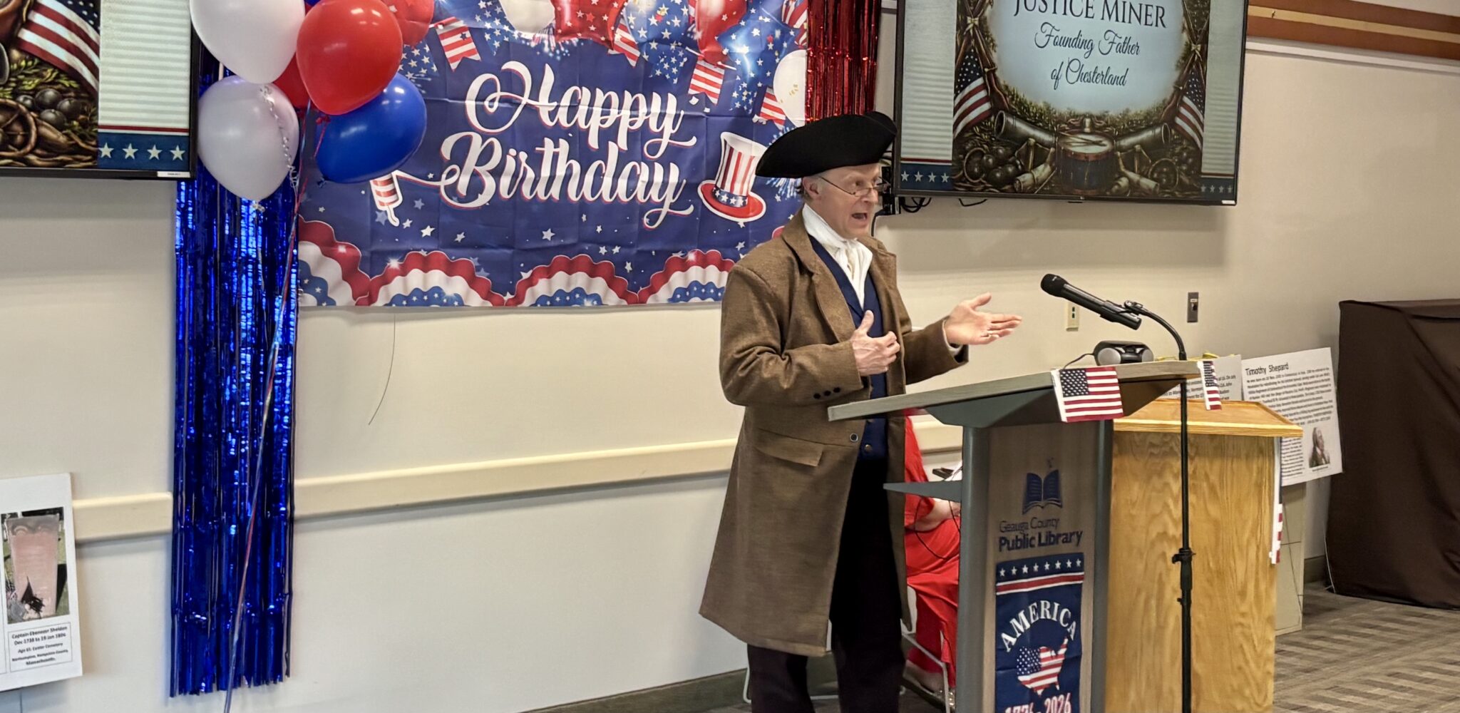 More than 100 residents gathered April 23 at Geauga West Library to celebrate Chester Township’s 225th anniversary. “This celebration is part of our ongoing work to bring Chesterland’s past to life,” said Diana Kresnye, member of the Chester Grave Hunters group. The event featured appearances by Chester’s founder Justice Miner and Gen. George Washington, portrayed by reenactors B.J. Kresnye and Dale Fellows. Miner, a private during the American Revolution, settled in Chester in 1801 and built a cabin at the corner of Heath and Mayfield roads, Diana said. He later became one of the township’s first trustees in 1816, Fellows...