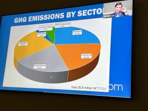 “Think about what we could do in the transportation realm to minimize greenhouse gas emissions,” she said, referring to the plan to increase regional rail transportation by 2050 and to support power availability for electric vehicles.