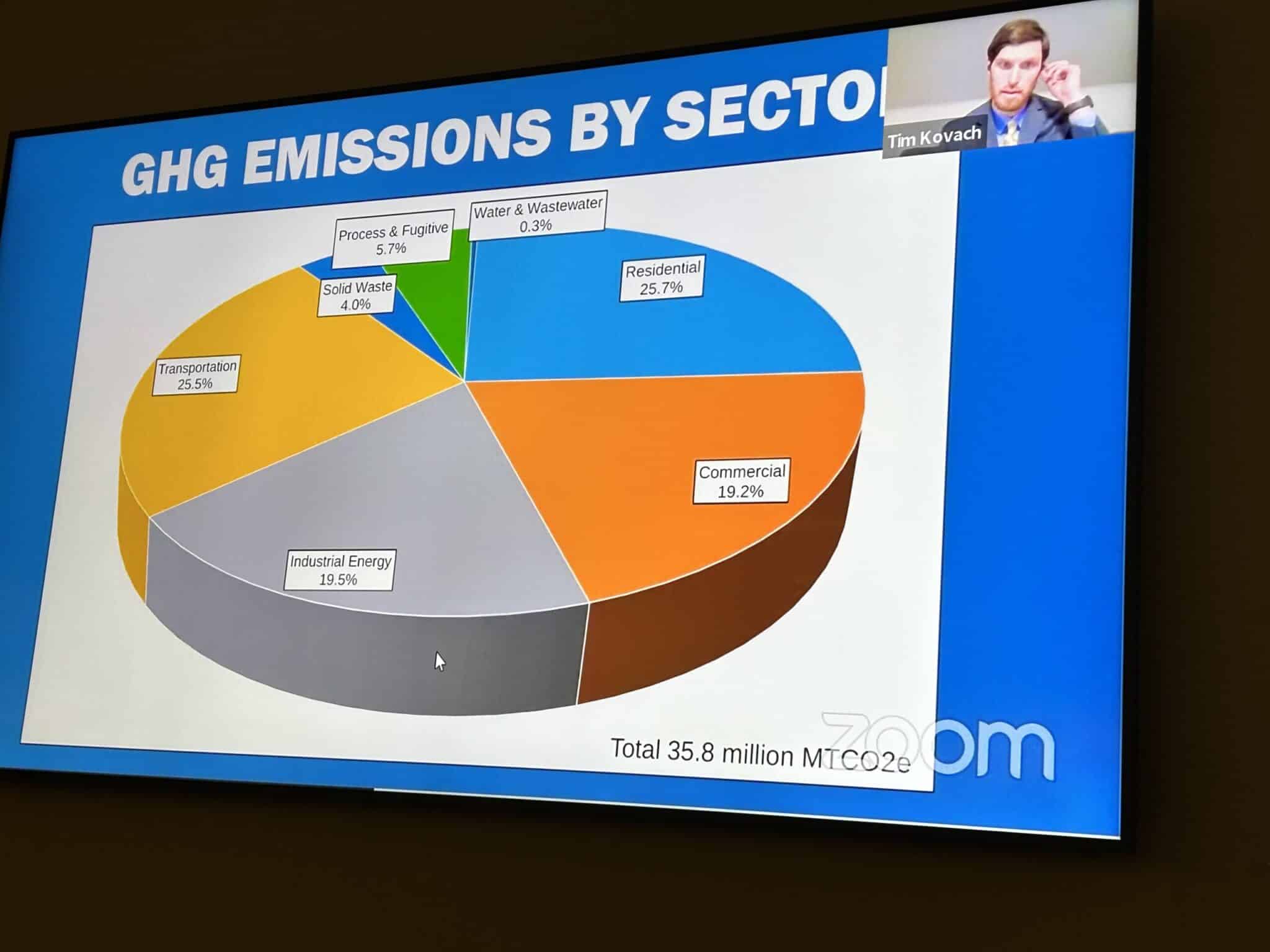 Currently, it appears Cuyahoga County is responsible for about 64% of greenhouse gas emissions, with Geauga County contributing about 3.2%. The three other counties were at 10% or less, he said.
