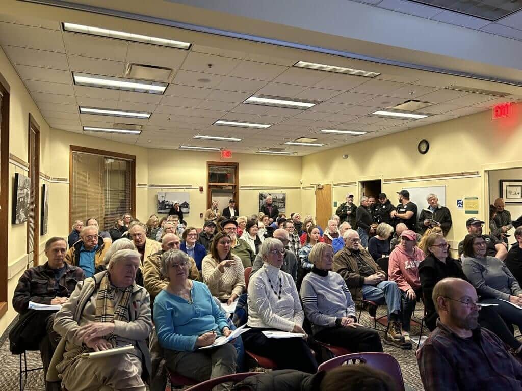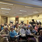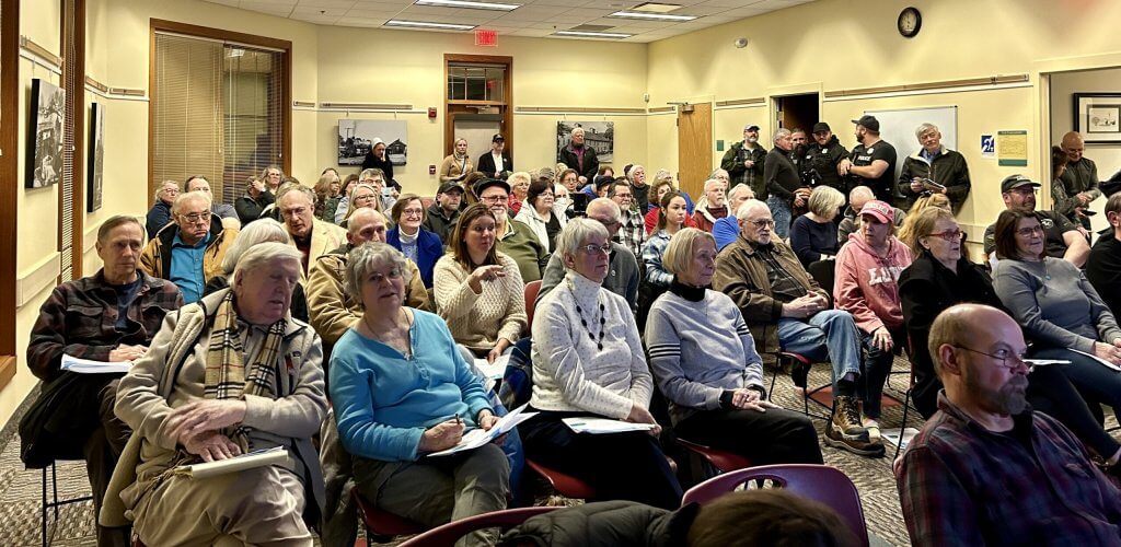 It was standing room only for the one-hour virtual production. About 100 residents filled the room and some gathered in the hallway to listen and comment during the presentation and after.