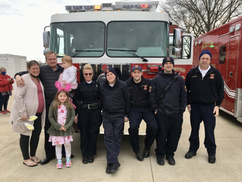 Special activities included Polaroid pictures with the Easter Bunny and greetings with the Burton police and fire departments at the end of the drive-thru.