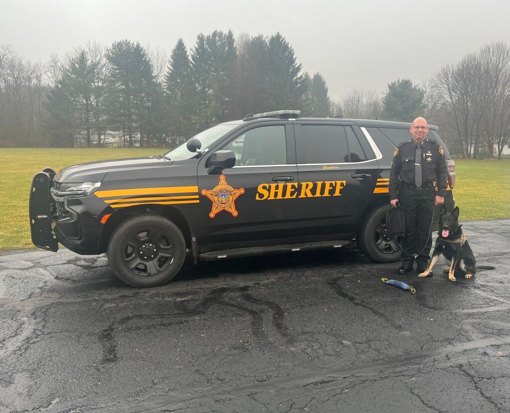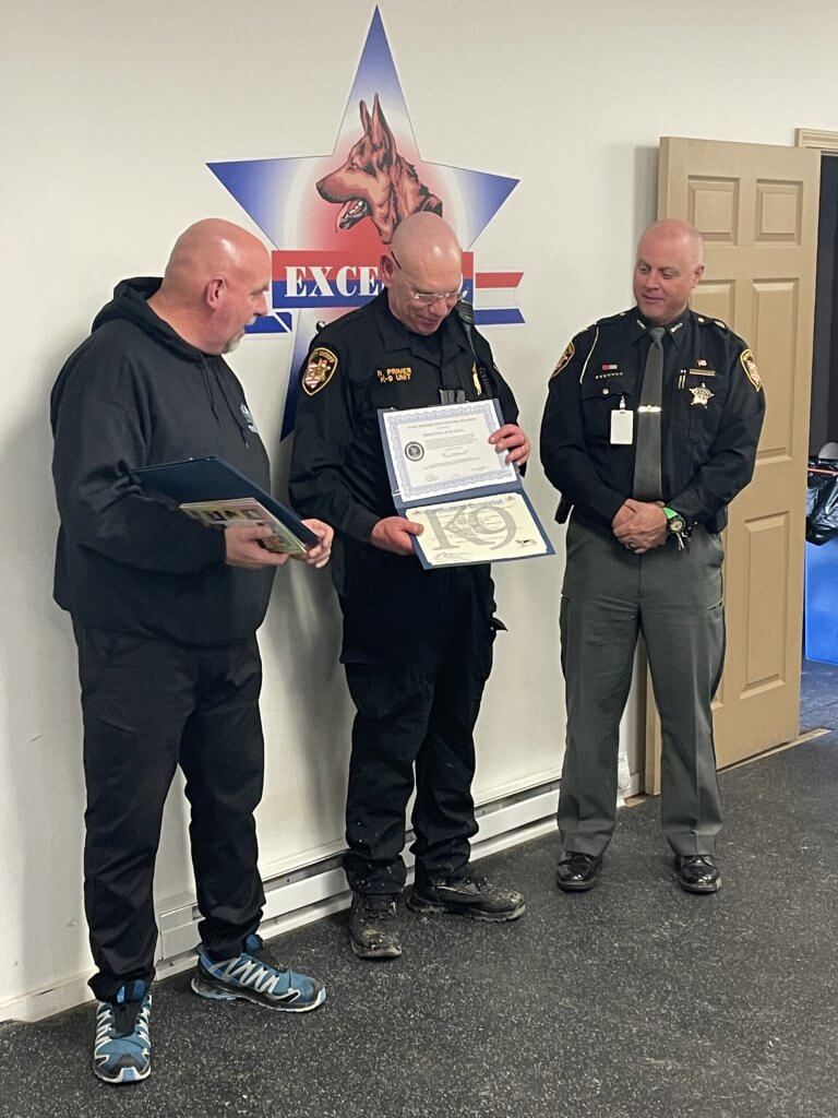 Primer has worked at the sheriff’s office for 16 years and is excited to be on patrol duty with his new partner. He met Justice in October at Excel K-9 Services in Hiram Township, where owner/founder Paul Shaughnessy trains all the sheriff’s office K-9s.