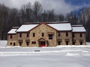 The Huntsburg campus uses geothermal wells for heating and cooling, solar panels to generate electricity and a solar-powered bio-shelter greenhouse.