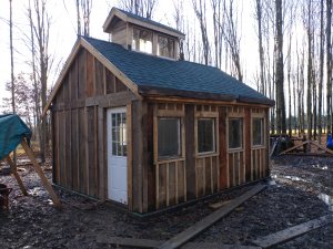 “The wet weather in the fall and winter made working on it difficult, but we were able to bring it to near completion,” said Pilarczyk, who works for the family landscaping and construction business — Pathways Landscape & Construction — by trade. “I designed it from scratch as a traditional sugarhouse and most of the materials used were reclaimed, repurposed or surplus donated by family.”