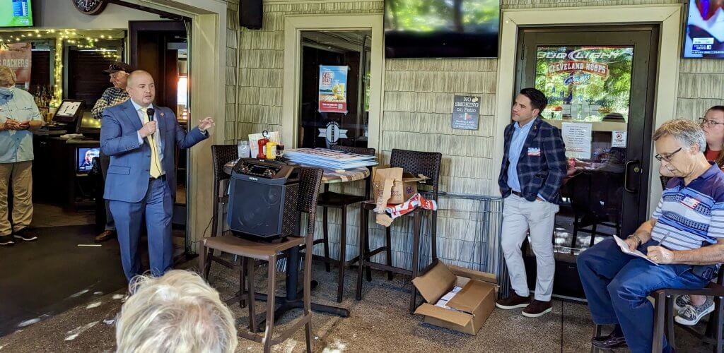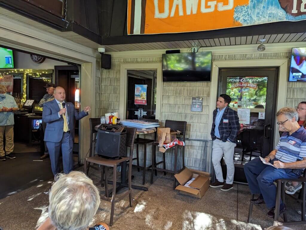State Rep. Steve Demetriou, who represents portions of Geauga County, introduced Stewart at an evening event hosted by the Western Reserve Women’s Republican Club at Panini’s in Chagrin Falls.