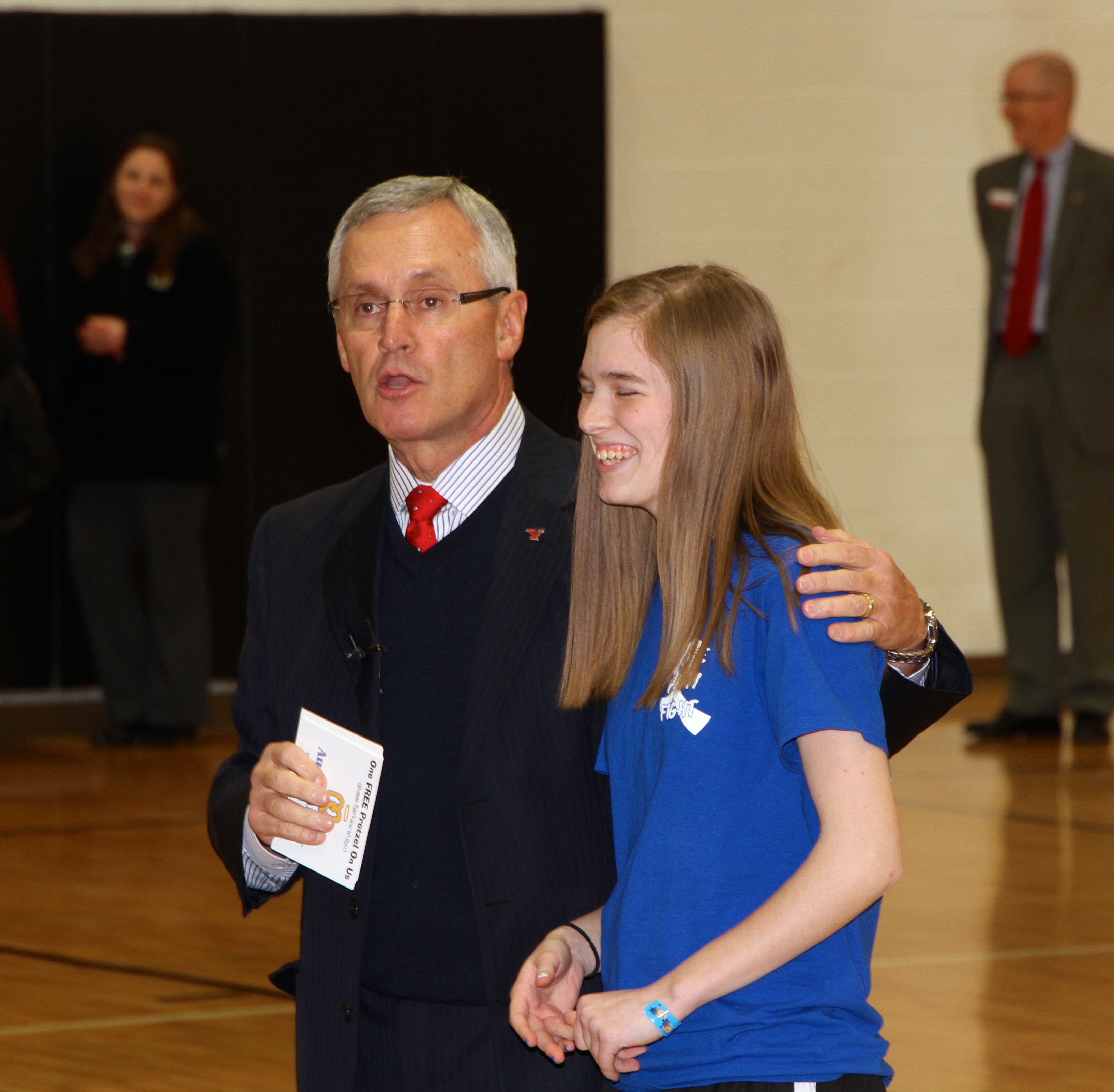 Tressel told the students they would be entering a “highly competitive” global world when they graduate from high school or college.