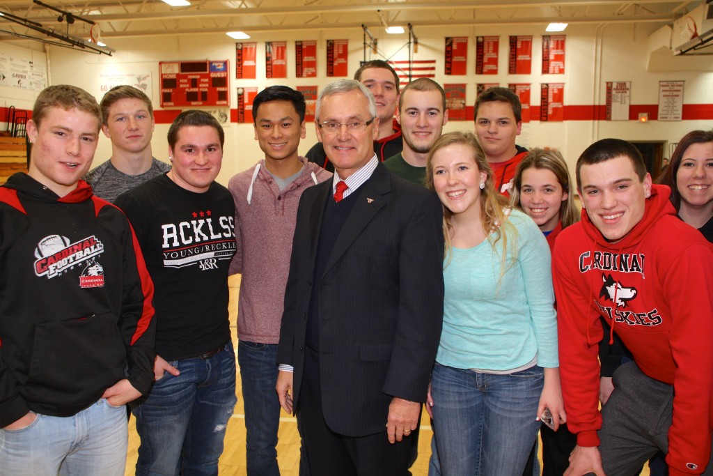 On Wednesday afternoon, he spoke to students at Cardinal High School about success for the future.