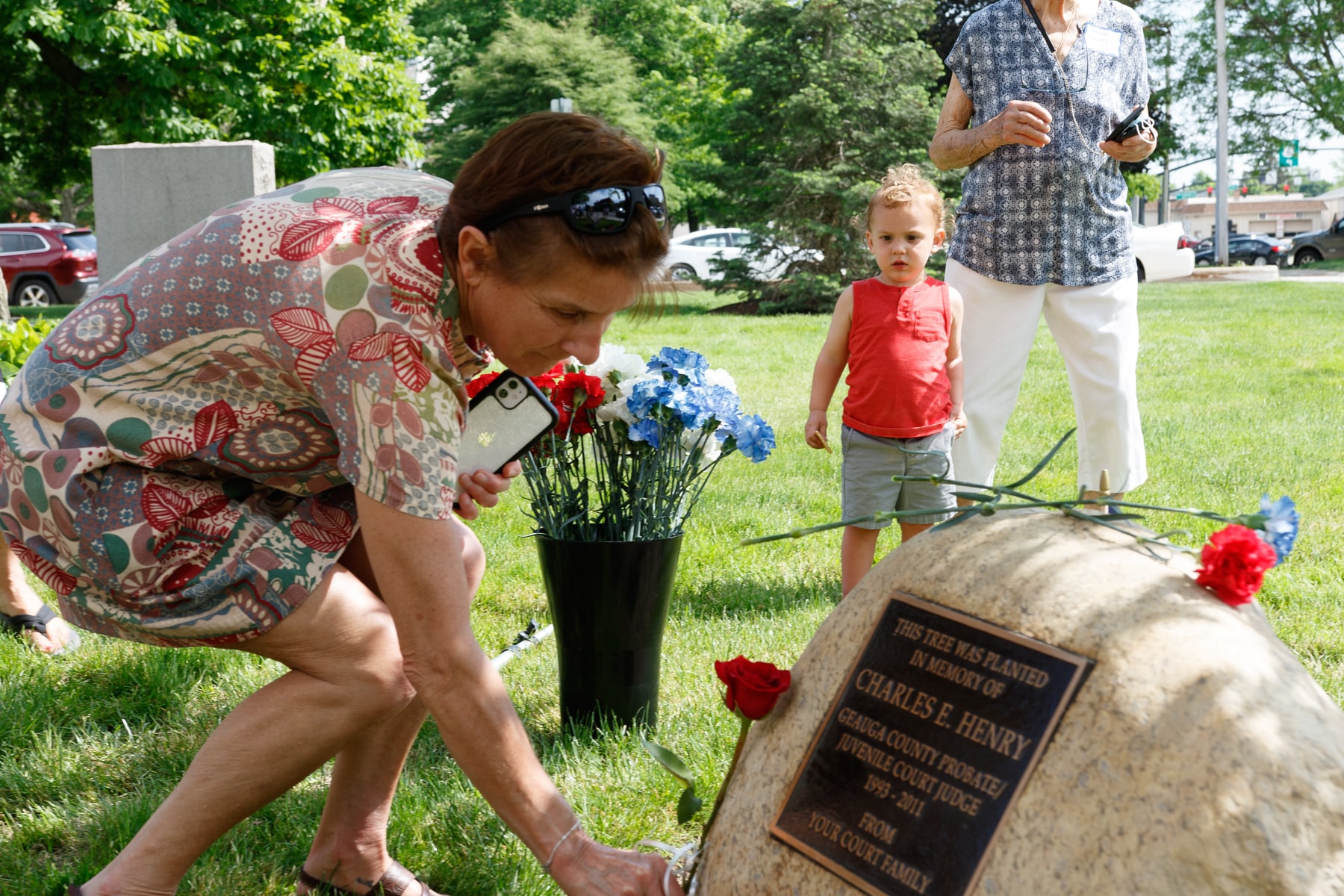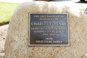 Exactly 10 years after Henry’s tragic death, about 60 current and former court employees, judges who had worked with him from the time he served in the Geauga County Prosecutor’s and Public Defenders’ offices, Henry family members and friends gathered near a tall willow oak tree on the Chardon Courthouse lawn to share memories and honor Henry’s life.