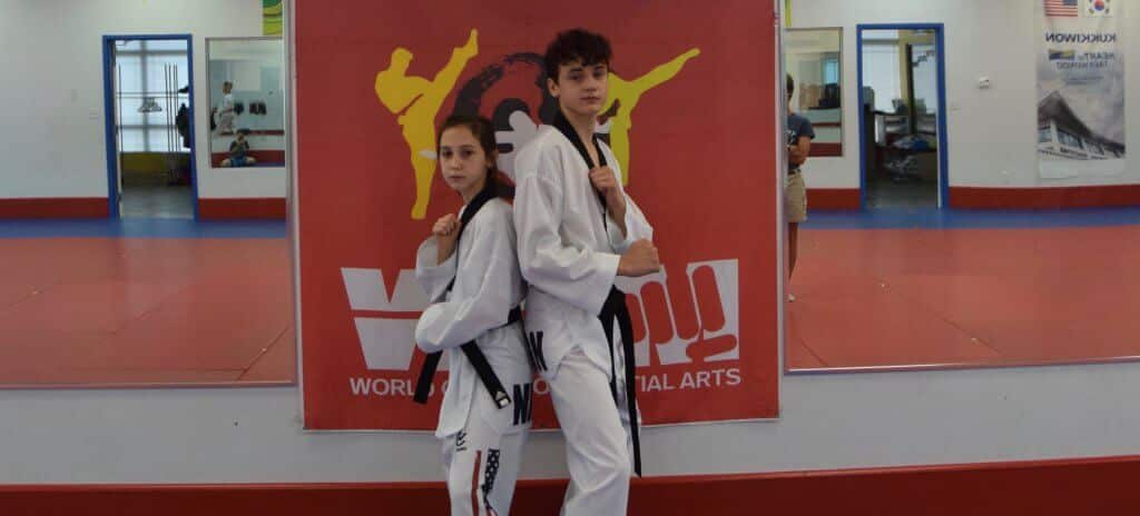 Luke has been doing taekwondo for about eight years, and Isabella has been doing it for three or four years.