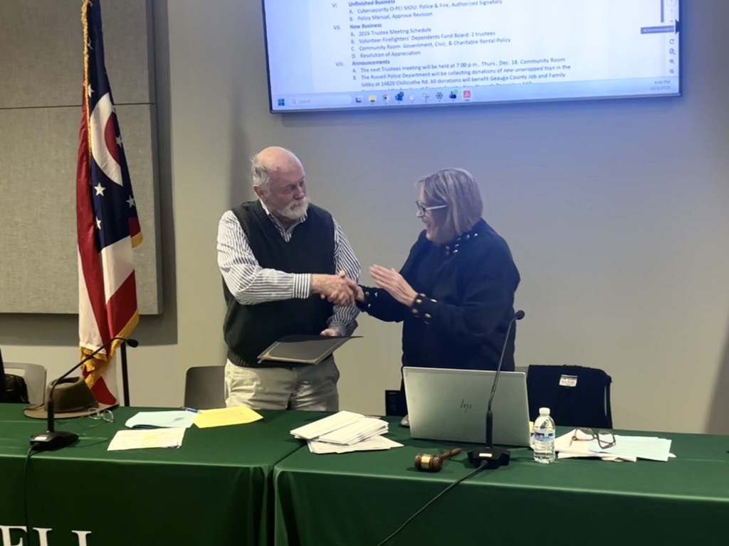 “Russell Township’s present-day character is, in large part, a result of Trustee Jim Mueller’s dedication to public service and to the causes he believed in,” she said. “I wish Jim Mueller all the best on his well-earned retirement.”