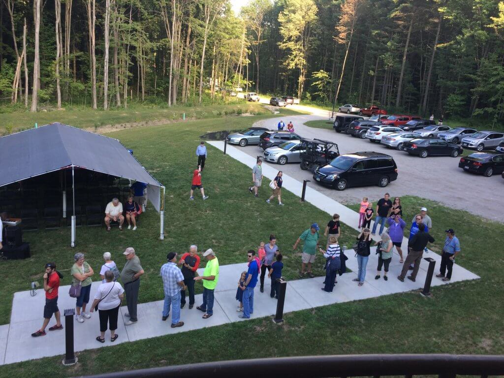 Sounds of crickets mixed with sounds of soft music as the night skies slowly darkened, while visitors waiting in line sporadically gazed up into the lighted opening near the off-limits second floor cat walk.