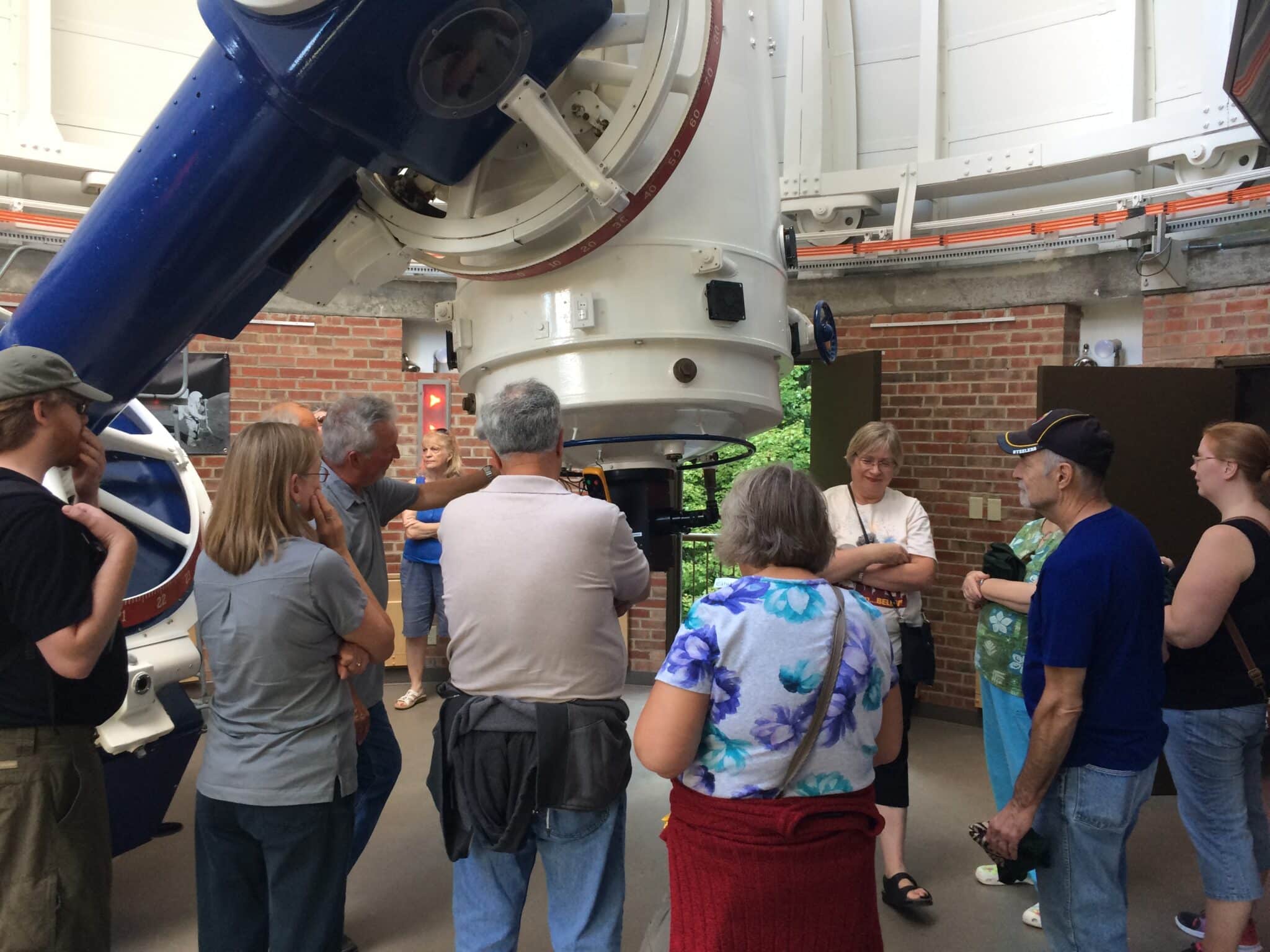 “Who else has something like this?” Schienke said, after taking his turn and walking up a wide, moveable set of steps to peer inside the telescope.“I love this. We have a real treasure here in Geauga County.”