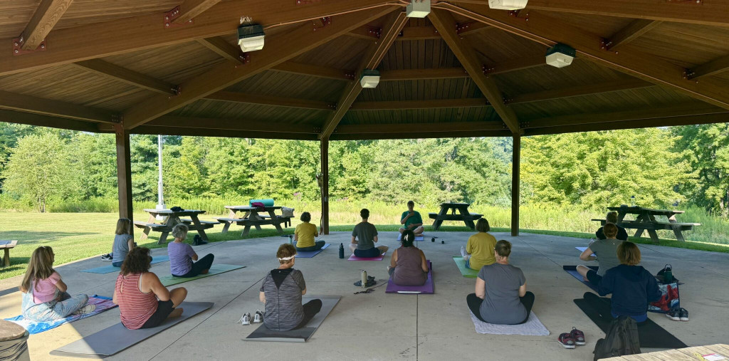 Back at the Overlook Shelter, soft music welcomed participants to an outdoor yoga session led by instructor Holly Anne.