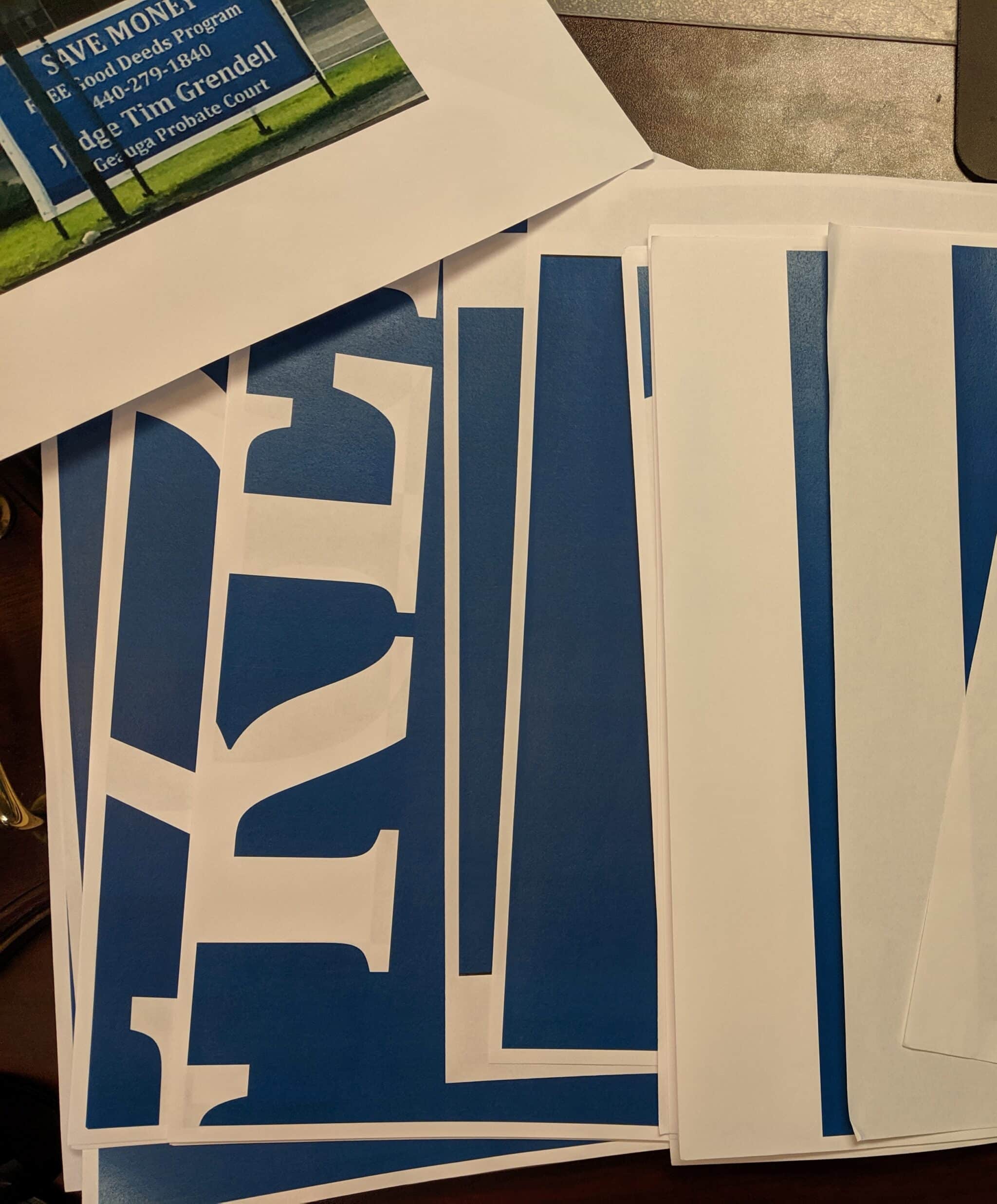 Instead of submitting a photo, Jacob said Laurie submitted 540 full-color printed pages of the sign, broken up into pieces that could – with enough floor space – be reconstituted into a large-scale version of the sign.