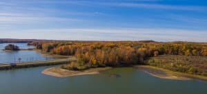 LaDue Reservoir, in Auburn and Troy townships, was completed in 1962 to provide a water source for the City of Akron. The lake was formed by damming two tributaries of the Cuyahoga River — Black Brook and Bridge Creek. The reservoir was named for Dr. Wendell Richard LaDue, longtime director of Akron’s water and sewer departments who retired in 1963.