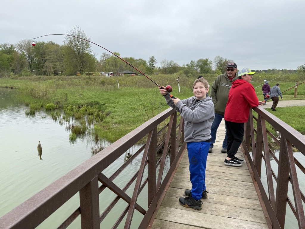 The sounds of joyful chatter and the buzz of hurling bobbers filled the fishing platforms May 8 at Geauga Park District’s Walter C. Best Wildlife Preserve in Munson Township.
