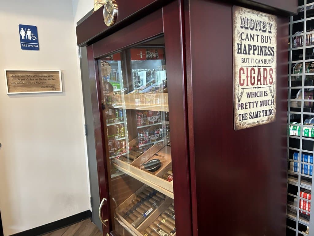 The Sunoco station in the middle of Russell Township supplies fresh sandwiches, Amish fry pies, Mad Batter donuts and select cigars in a tall, glass-fronted humidor.