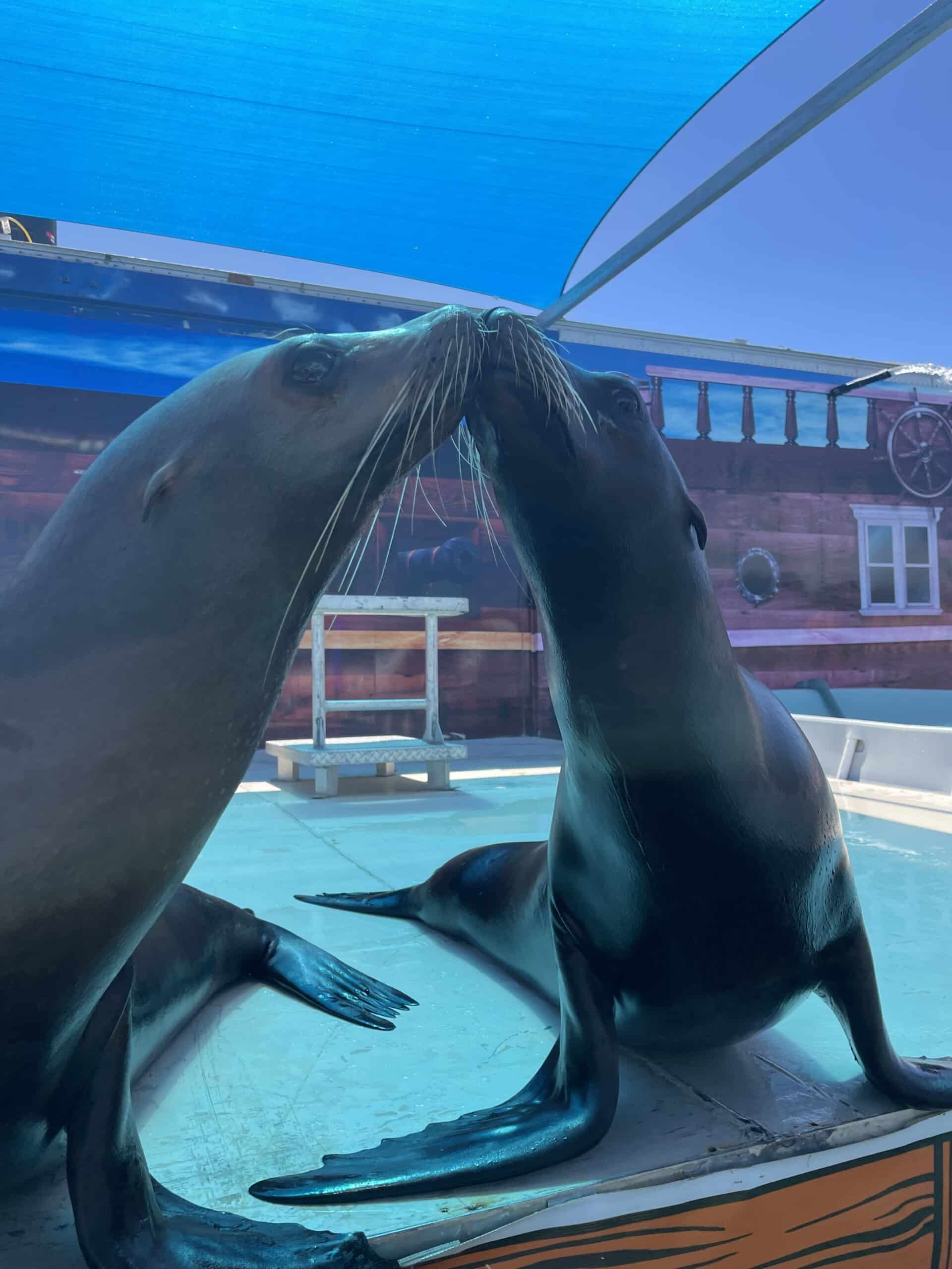 Energizing, pulse-pumping music blasted from the speakers as audience members whooped and hollered at the entrance of the two sea lion stars.