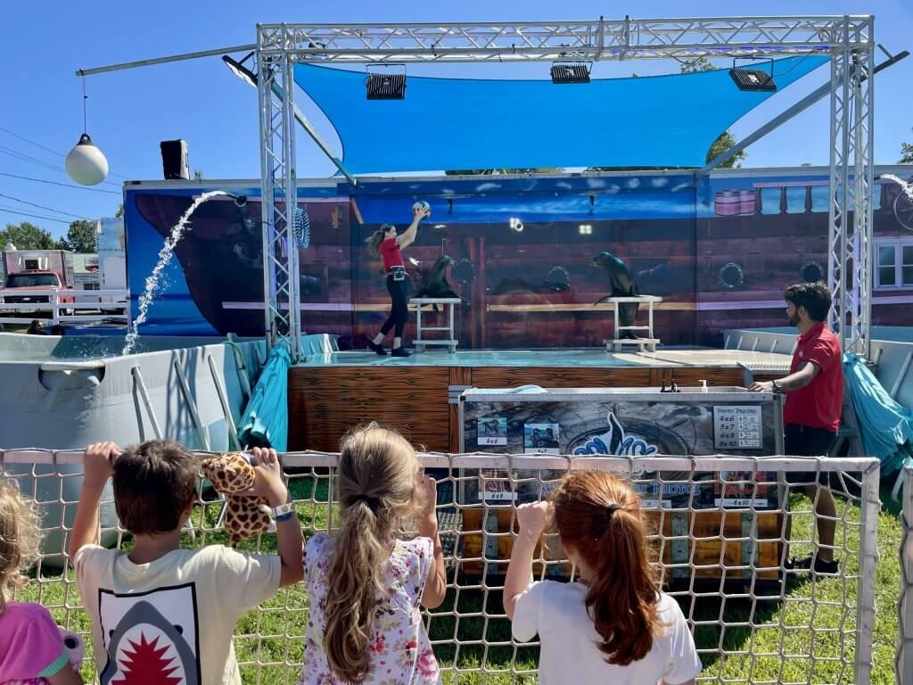 “We have an educational show and we are going to talk about recycling, differences between a seal and sea lion, and these girls will show you some natural behaviors,” Bartholo said. “And, of course, how to balance the ball on their nose.”