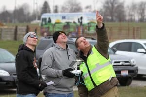 The drones and pilots, accompanied by their instructors, were at the Geauga County Fairgrounds in Burton on April 11 to hone and show off their skills in windy, rainy, wintery weather.