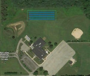 The Geauga solar array represents about 9% of the total amount of solar panels being installed at all six KSU campuses. Similar projects are underway at Ashtabula (68% campus use, eliminating 905 tons of CO2); East Liverpool (12% campus, 89 tons of CO2); Salem (73% campus use, 617 tons CO2); Stark (7% campus use, 252 tons CO2); and Trumbull (65% campus use,1,284 tons CO2).