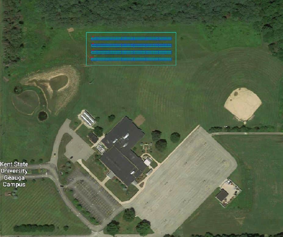 Ground-mounted solar photovoltaic panels are being installed at the KSU–Geauga campus in Burton Township to provide 322 kilowatts of clean solar energy every year (392,489-kilowatt hours), which amounts to 67% of the campus’ energy use.