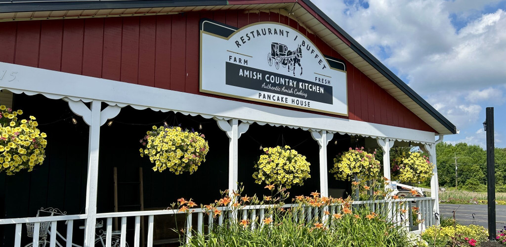 In keeping with the Amish theme, the menu offers crispy honey-fried chicken, stuffed peppers, cabbage, kielbasa and pierogies, as well as other favorite comfort foods like Lake Erie walleye, broasted chicken and St. Louis ribs to satisfy any appetite.